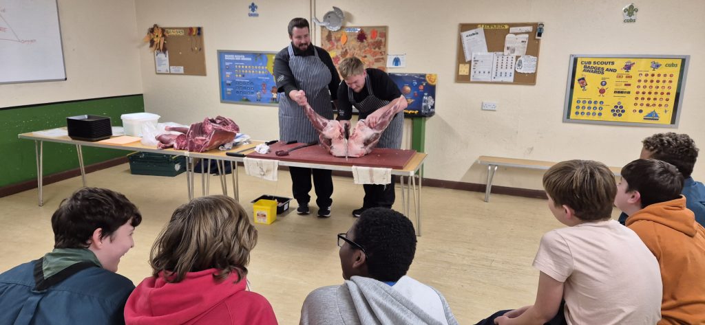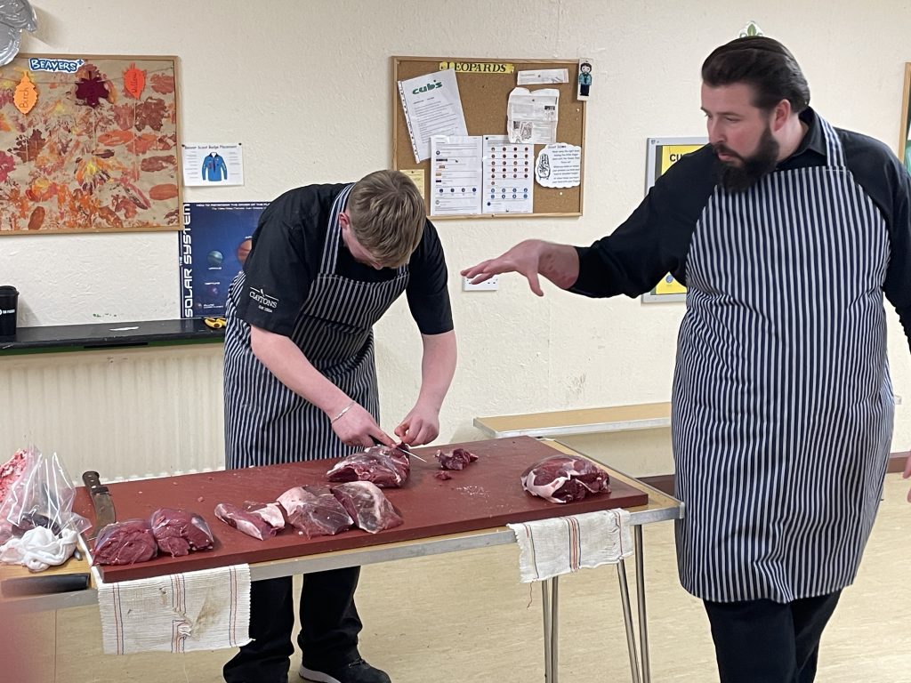 We were delighted when our fantastic local butchers Claytons visited the Scout Group in November. Matt and Harley came along to see the Drake Troop to teach our young people about quality meat and to give them an introduction to a career as a butcher. Or as the session was called, to Meet the Meat.